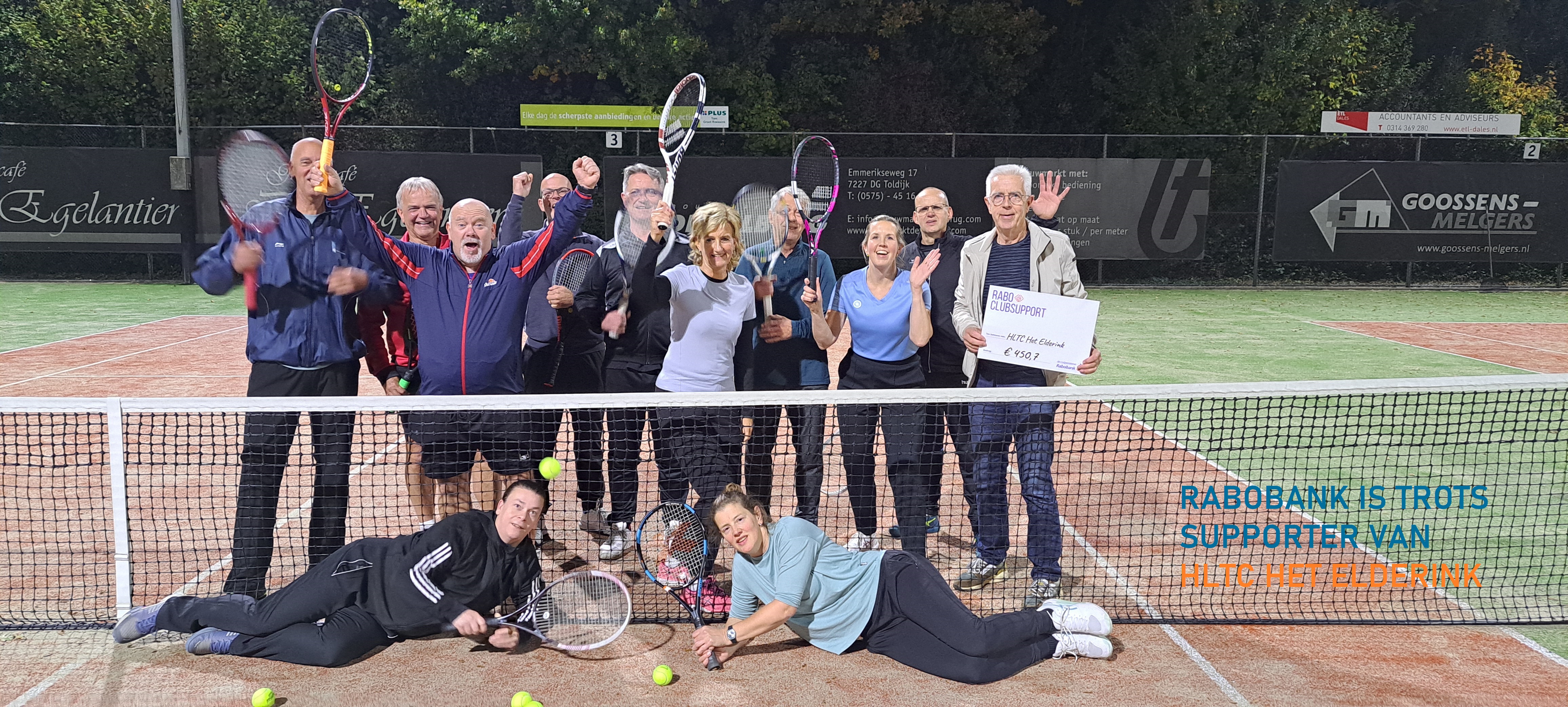 Afgelopen week werd de cheque door de Rabobank overhandigd en hebben we om dit te vieren nog een leuke actiefoto gemaakt op het tennispark.